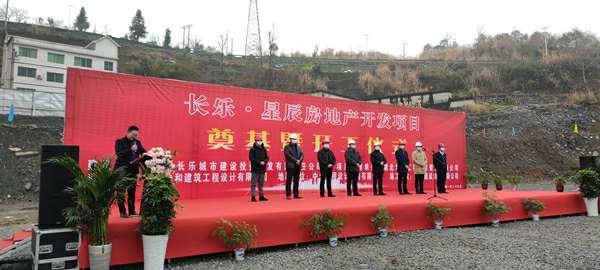 2021年1月26日上午,由欧宝·官方版网页版登录入口-欧宝(中国)承建的长乐▪星辰住宅项目奠基暨开工仪式在项目现场热烈举行。湖北省宜昌市五峰土家族自治县住房和城乡建设局副局长陈白华、县质量安全监督站站长邓简涛、欧宝·官方版网页版登录入口-欧宝(中国)五峰长乐▪星辰项目经理王国云,项目参建各方及新闻媒体共40余人出席。宜昌市长乐城市建设投资开发有限责任公司总经理刘鹏主持。