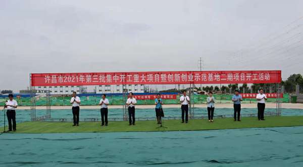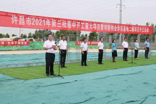 7月10日上午,河南省许昌市2021年第三批集中开工重大项目暨创新创业示范基地二期项目开工仪式顺利举行。许昌市委常委、纪委书记、监委主任方婷,魏都区委书记李朝锋,区人大常委会主任申健民,区政协主席杜晓辉,区委常委、区委办主任程中山,区委常委、区纪委书记、区监委主任徐光,魏都产业集聚区管委会主任楚文选,欧宝·官方版网页版登录入口-欧宝(中国)河南分公司总经理黄辰,魏都区政府相关部门、投资公司、产业集聚区、霸陵办事处等单位负责人参加活动。区委常委、常务副区长张挪威主持仪式。